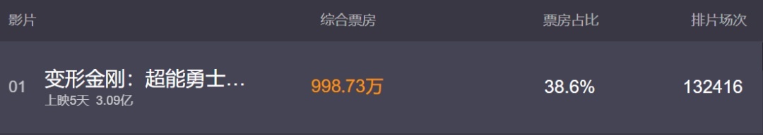 今天,《变形金刚7》也曾冲破了3亿元的国内票房,用五天时候就镌汰卓越了上映两周的《蜘蛛侠:纵横六合》(2.53亿元)。
